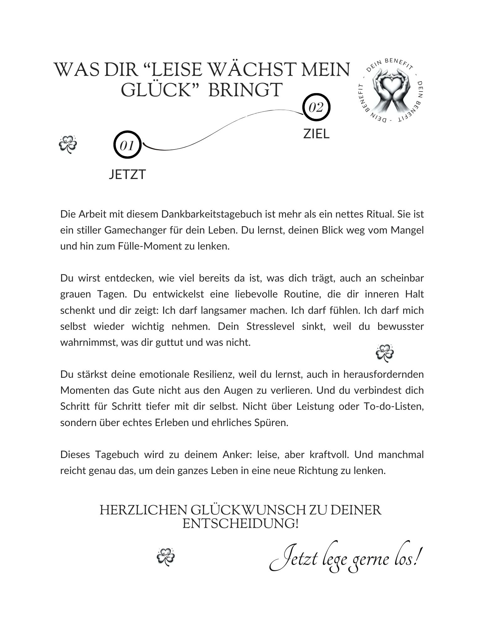 Dankbarkeit schafft Platz für das Wesentliche, öffnet neue Perspektiven und lässt dich kleine Wunder mitten im Alltag sehen. Sie hilft, Druck zu relativieren, Vergleiche loszulassen und wieder mit offenen Augen – und offenem Herzen – zu leben.