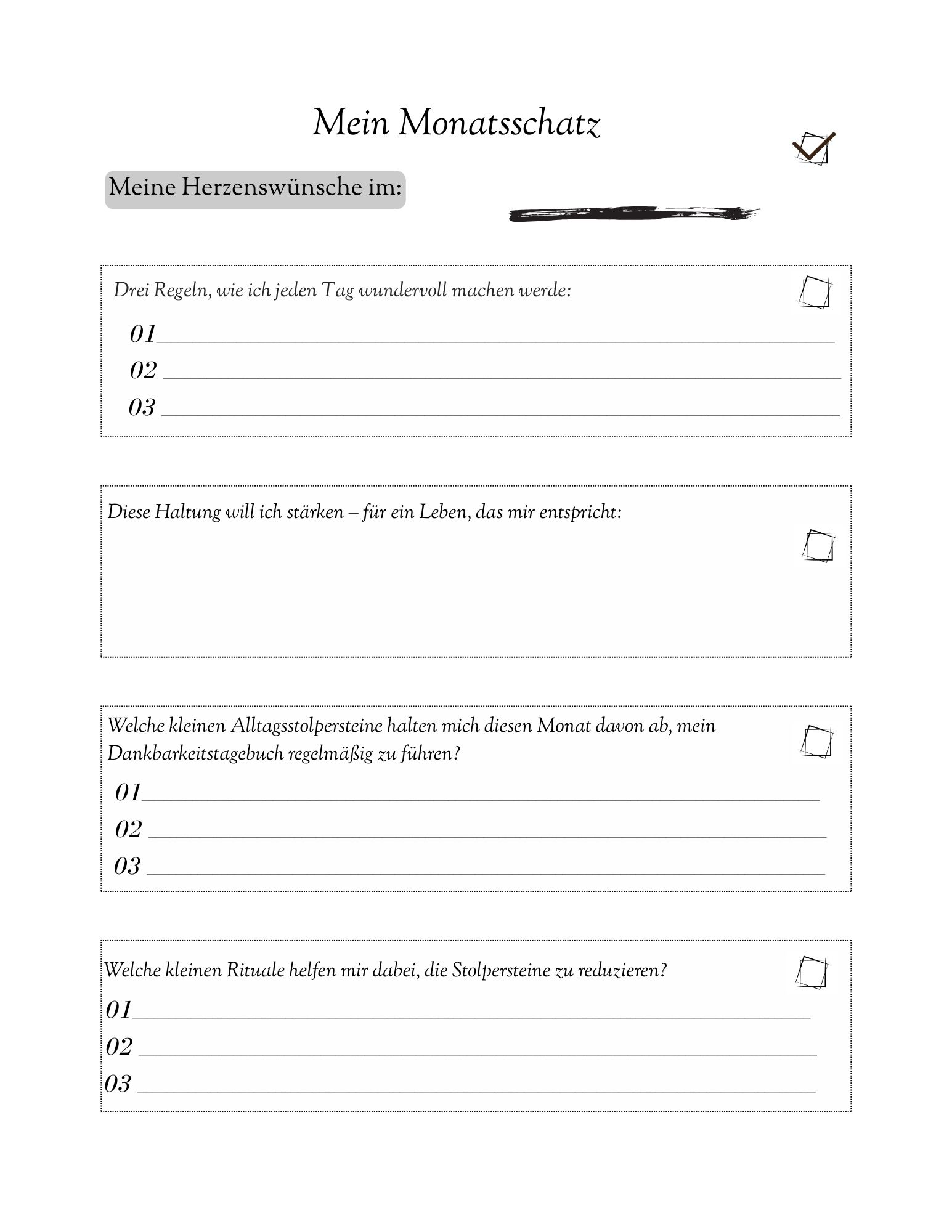 Statt „schnell etwas abhaken“ lädt dich dieses großzügige A4-Workbook zu einem echten Ritual ein. Kein Begleiter für die Tasche, sondern ein sichtbarer Anker im Alltag – präsent, wertvoll und bewusst. Es stoppt das Tempo, öffnet Raum zum Spüren und macht Dankbarkeit greifbar.